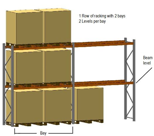A rough bay count for the quantity of racking to be inspected (a bay is a module between 2 uprights)